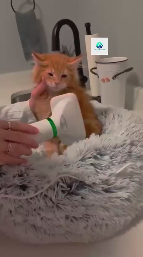 "Electric brush for dogs and cats that gently removes loose hair, detangles, and also dries the coat while massaging your pet. Easy to use, effective for all fur types, and keeps the coat clean, shiny, and comfortable."